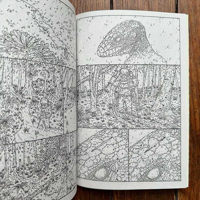 Into the Cosmos collects illustrations Tsemberlidis made for recent Danish editions of Solaris by Stanislaw Lem and 2001: A Space Odysseyand Rendezvous with Rama by Arthur C. Clarke. It also features the comic Protoconscious.