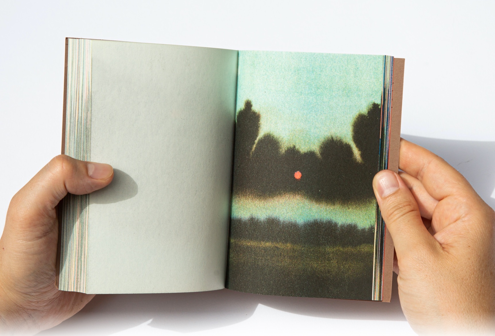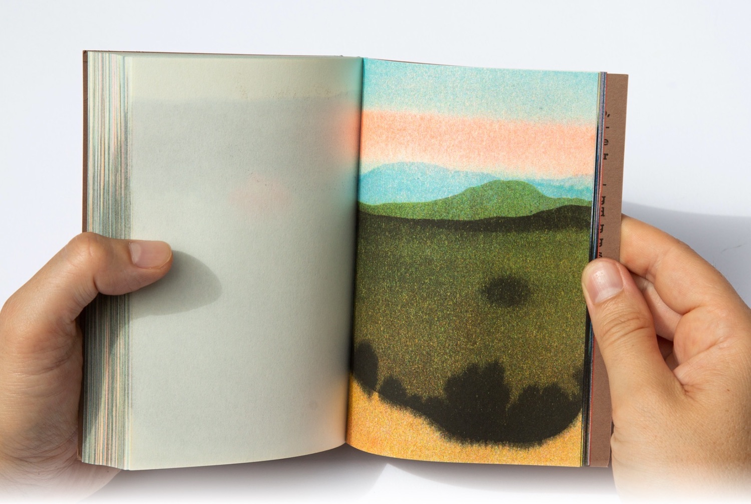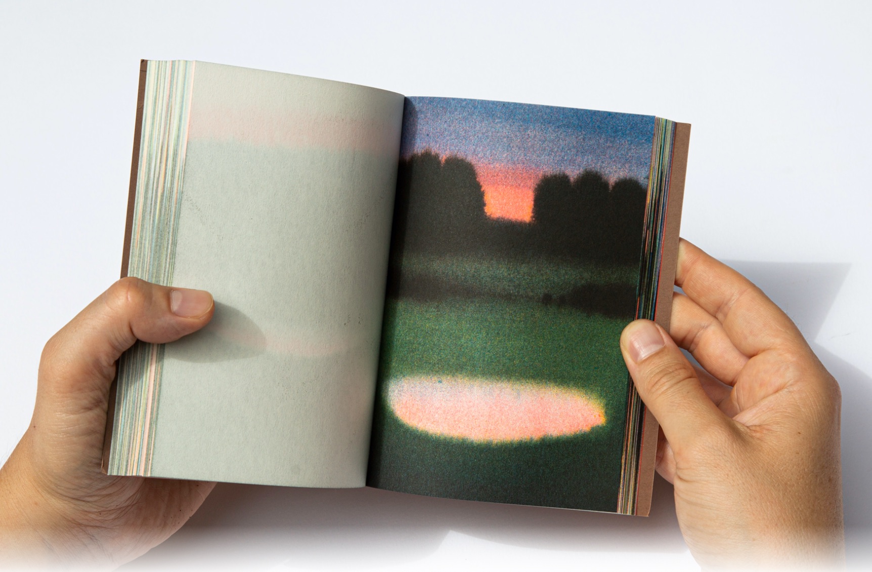 Passages by Magali Cazo compiles a series of more than 100 ink paintings on soaked paper, from A6 to Eagle size. Each of them printed in a 4 to 5 color combinations using Risograph, giving this book a high pictural intensity.